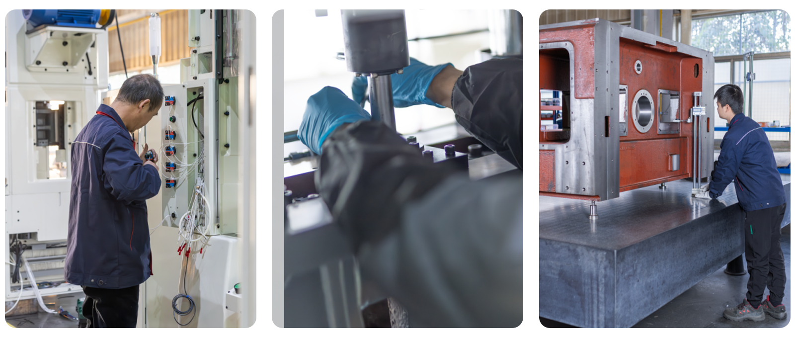 对床身、滑块、工作台等大型关键铸件的几何精度,如平面度、直线度、垂直度、孔位的形位精度等进行全方位检测, 从源头上保证基础框架精准,这是冲床长期稳定高精度冲压的根基。
